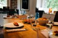 Nach einer etwas unruhigen Nacht – Christopher ging es ähnlich – trafen wir uns schon vor dem geplanten Beginn der Masterclass am Esstisch. Christopher und ich setzten fort, womit wir aufhörten. Bildbände studieren. Kurze Zeit später kam Steffens wundervolle Frau und gute Seele des Hauses, Christina, mit Frühstück. Christina versorgte uns die zwei Tage mit ihren wundervollen Speisen drei mal am Tag. Allein das hätte einen eigenen Beitrag verdient. Ich – der alte Fleischesser – habe zwei Tage kein Stückchen Fleisch gegessen und es nicht vermisst. Und das, obwohl ich mir immer einrede, dass eine Mahlzeit ohne Fleisch keine Mahlzeit ist 🙂 Christina tischte uns frische Brötchen, selbst gemachte Marmeladen, Obstalat und herrliche, selbstgemachte Frischkäse-Varianten auf. Unglaublich, wie gut das schmeckte. Die große Mühe die sich machte, Kuchen und Kekse für uns zu backen und abends noch einmal mit leckeren Speisen zu verwöhnen kann ihr gar nicht hoch genug angerechnet werden.